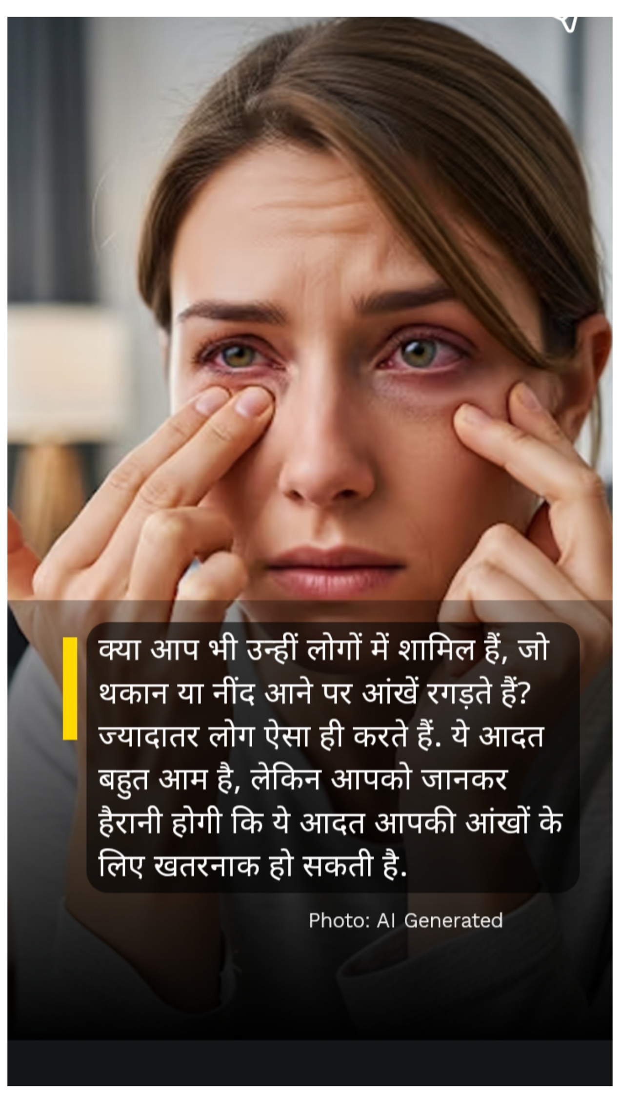 अपनी आँखों को रगड़ने से बचें, खासकर यदि वे खुजली या परेशान हैं। आँखों को मसलने से जलन, लालिमा और संक्रमण हो सकता है। यदि आपकी आँखें परेशान कर रही हैं, तो उन्हें ठंडे पानी से धो लें या डॉक्टर से सलाह लें।