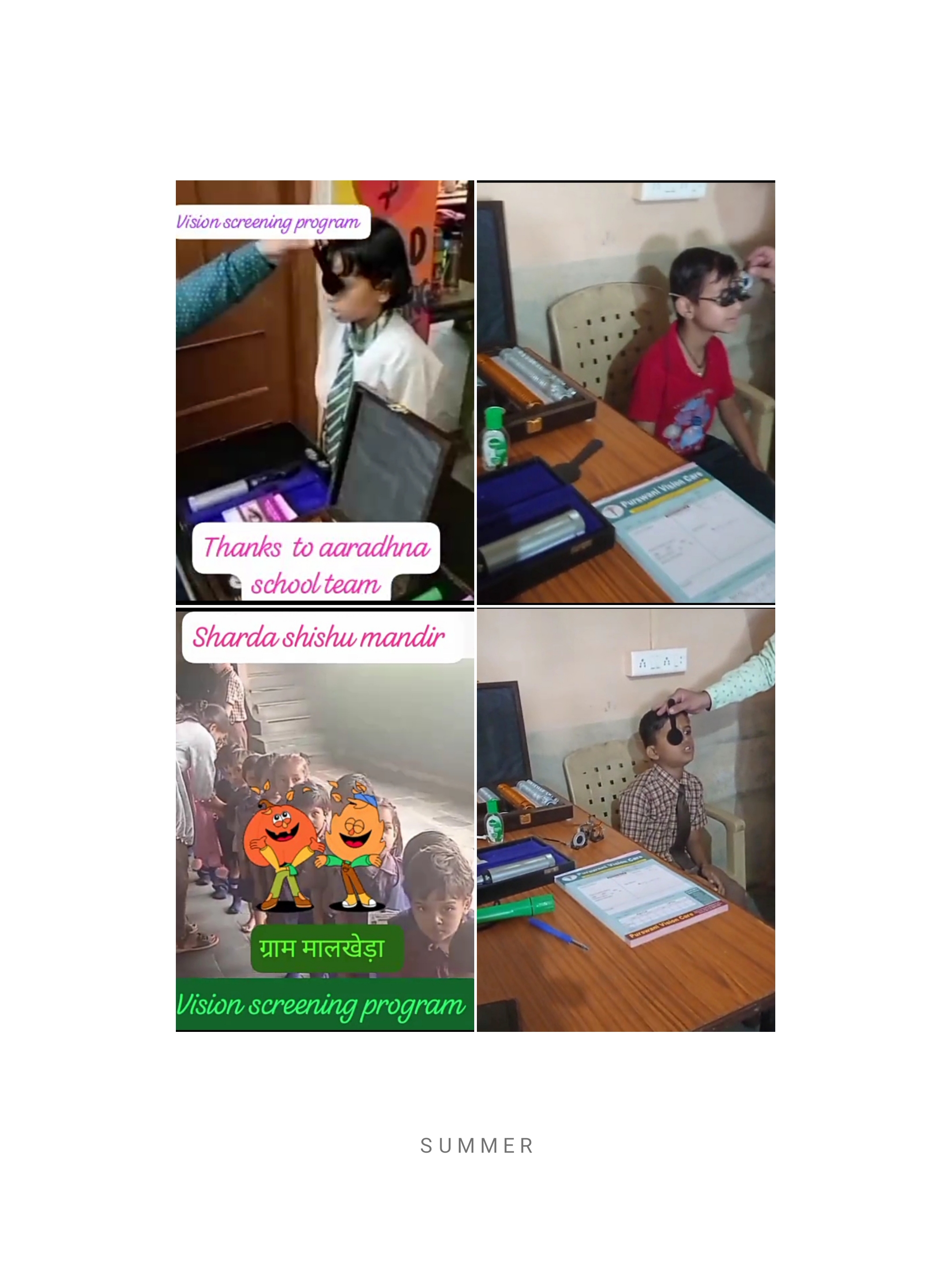 स्कूल चलें हम अभियान के अंतर्गत पुर्सवानी विजन केयर नीमच द्वारा 15 जुन 2025 से 31 जुलाई 2025 तक संस्थान व स्कूलों के माध्यम से लगभग 250 बच्चों की निशुल्क आखों की जांच की गई ,इस दौरान कई बच्चों को पहली बार दृष्टि दोष देखा गया, जिन्हे उचित परामर्श हेतु सलाह दी गई