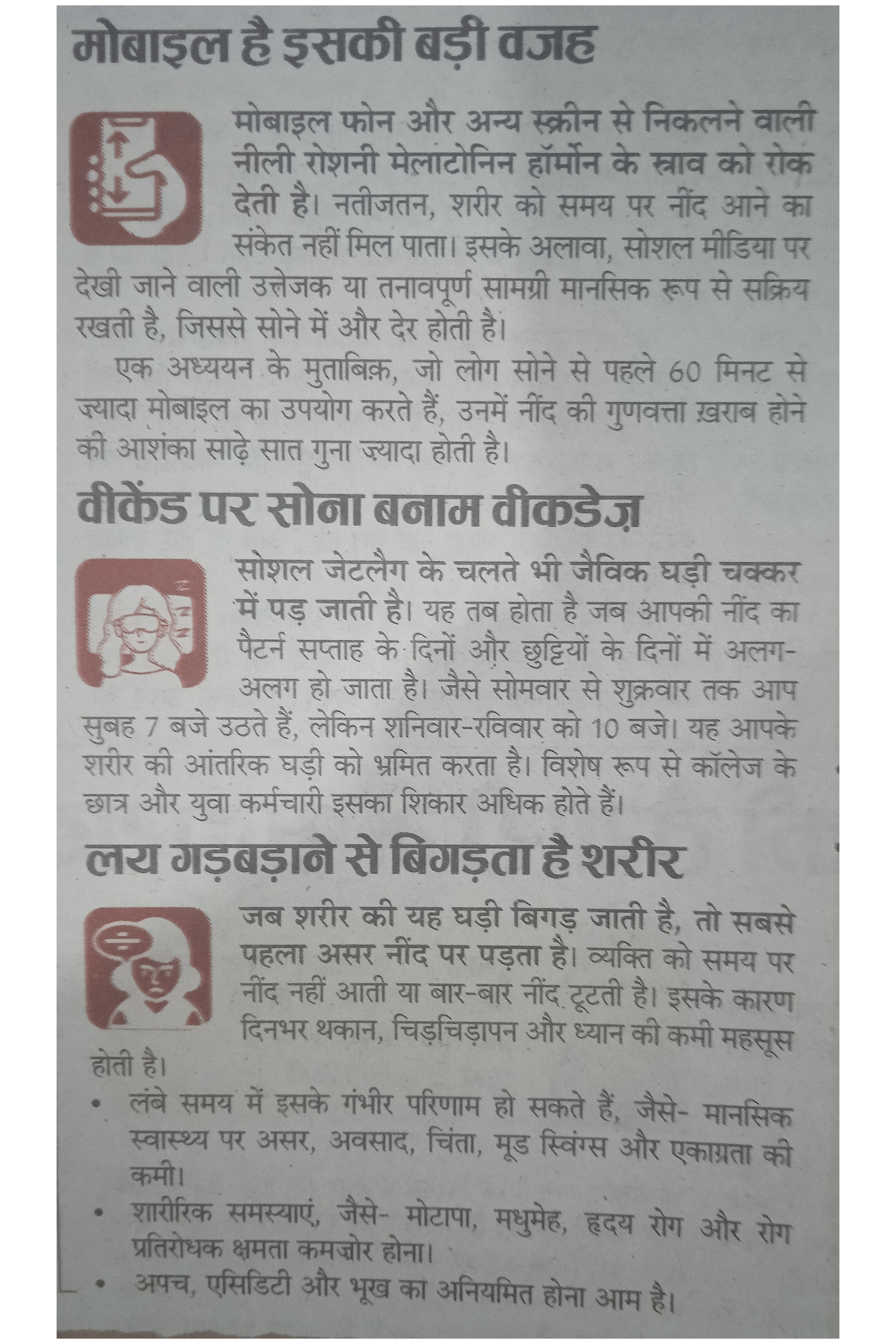 मोबाइल से निकलने वाली नीली रोशनी मेलाटोनिन हार्मोन के उत्पादन को कम कर सकती है, जो नींद के लिए जरूरी है, जिससे नींद में खलल पड़ सकता है।